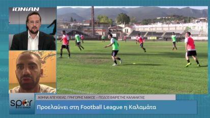 Spor στο ΙΟΝΙΑΝ | Προελαύνει στη Football League η «Μαύρη Θύελα». Ο Γρηγόρης Μάκος στο ΙΟΝΙΑΝ22/10/2019Spor στο Ionian • ΑθλητισμόςΜεσσηνία