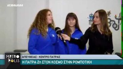 Πάτρα | Στη δεύτερη θέση η Πατρινή ομάδα στην Ολυμπιάδα Ρομποτικής13/11/2019Metropolis • ΕκπαίδευσηΑχαΐα