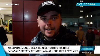 Δυτ. Ελλάδα | Διασωληνωμένος μέσα σε ασθενοφόρο για ώρες – «Μπαλάκι» μεταξύ Αιτ/νιας – Αχαϊας22/02/2020Κοινωνία