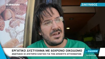 Ζάκυνθος | Εργατικό δυστύχημα με 60χρονο οικοδόμο. Αναγκαίοι οι έλεγχοι για την αποφυγή ατυχημάτων16/11/2019ΚοινωνίαΖάκυνθος