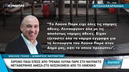 Αιτωλοακαρνανία | 3χρονο παιδί έπεσε από τρενάκι λούνα παρκ στη Ναύπακτο31/10/2019ΚοινωνίαΑιτωλοακαρνανία