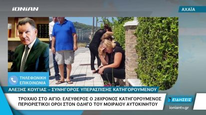 Αίγιο | Τροχαίο στις Καμάρες : Ελεύθερος με περιοριστικούς όρους ο 28χρονος κατηγορούμενος24/10/2019ΚοινωνίαΑχαΐα