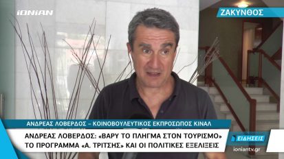 Ζάκυνθος | Α. Λοβέρδος για τον τουρισμό, Το πρόγραμμα «Α. Τρίτσης» & τις πολιτικές εξελίξεις24/06/2020ΠολιτικήΖάκυνθος