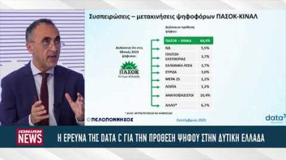 DATA C – Πρόθεση ψήφου στις εθνικές εκλογές στην ΠΔΕ με συμμετοχή της Μαρίας Καρυστιανού01/10/2025ΠολιτικήΑχαΐα