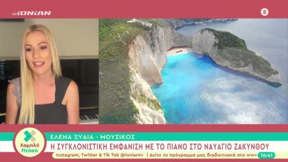 Η Έλενα Ξυδιά με το πιάνο της στο Ναυάγιο της Ζακύνθου