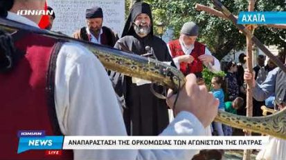 Η αναπαράσταση της ορκομωσίας των αγωνιστών της Πάτρας στην Πλατεία Αγίου Γεωργίου27/03/2023Πολιτισμός