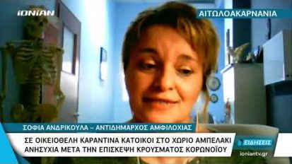 Αιτωλ/νια | Σε οικειοθελή καραντίνα οι κάτοικοι στο χωριό Αμπελάκι μετά από επίσκεψη κρούσματος09/10/2020ΥγείαΑιτωλοακαρνανία