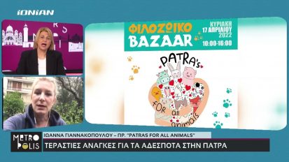 Πάτρα | Ιωάννα Γιαννακοπούλου – Φιλοζωικό Bazaar την Κυριακή 17 Απριλίου16/04/2022Metropolis • ΚοινωνίαΑχαΐα