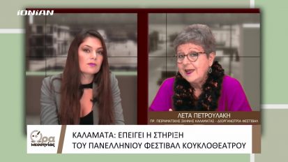 Ώρα Μεσσηνίας | Λέτα Πετρουλάκη– Πανελλήνιο Φεστιβάλ Κουκλοθέατρου | Ολόκληρη εκπομπή10/02/2020Πολιτισμός • Ώρα ΜεσσηνίαςΜεσσηνία