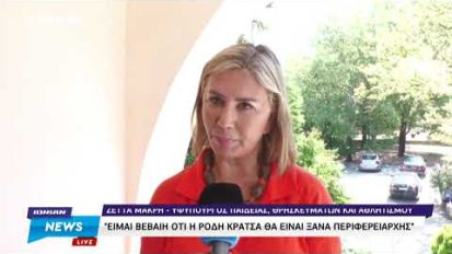 H εκ νέου υποψήφια Περιφερειάρχης Ιονίων Νήσων Ρόδη Κράτσα στην «Χαμηλή Πτήση»07/09/2023ΠολιτικήΙόνια Νησιά