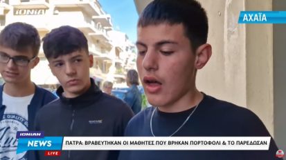 Βραβεύτηκαν οι πατρινοί μαθητές που βρήκαν πορτοφόλι & το παρέδωσαν στην αστυνομία09/05/2023ΚοινωνίαΑχαΐα