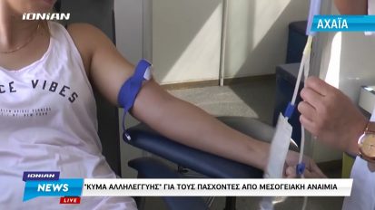 Αχαΐα | «Kύμα αλληλεγγύης» για την στήριξη των πασχόντων με μεσογειακή αναιμία27/08/2022ΚοινωνίαΑχαΐα