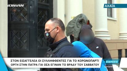 Πάτρα | Στον εισαγγελέα οδηγήθηκαν οι συλληφθέντες για το κορωνοπάρτι του Σαββάτου16/03/2021ΚοινωνίαΑχαΐα