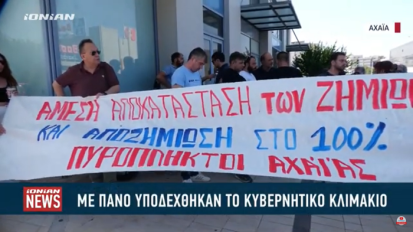 Με πανό διαμαρτυρίας υποδέχθηκαν το κυβερνητικό κλιμάκιο οι πυρόπληκτοι της Αχαϊας19/08/2025ΚοινωνίαΑχαΐα