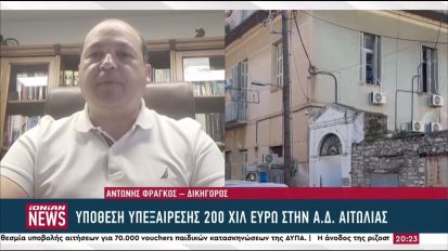 Ο δικηγόρος Αντ. Φράγκος για την υπεξαίρεση στην Αστυνομική Δ/νση Αιτωλίας20/05/2025ΚοινωνίαΑιτωλοακαρνανία