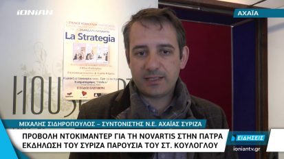 Πάτρα | Προβολή ντοκιμαντέρ για τη Novartis. Εκδήλωση του ΣΥΡΙΖΑ παρουσία του Στ. Κούλογλου13/01/2020Κοινωνία • ΠολιτικήΑχαΐα, Ελλάδα