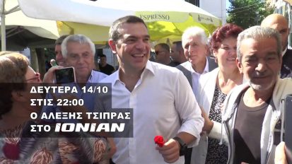 Ο Αλέξης Τσίπρας απόψε Δευτέρα 14 Οκτωβρίου στις 22.00 αποκλειστικά στο ΙΟΝΙΑΝ TV12/10/2019Web TVΕλλάδα
