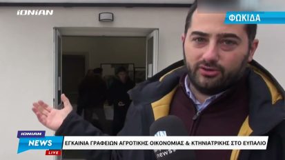 Εγκαίνια των γραφείων Αγροτικής Οικονομίας και Κτηνιατρικής Περιφέρειας Στερεάς Ελλάδας στο Ευπάλιο Δωρίδος30/01/2023ΟικονομίαΦωκίδα