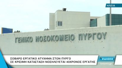 Ηλεία | Σοβαρό εργατικό ατύχημα στον Πύργο. Σε κρίσιμη κατάσταση νοσηλεύεται 40χρονος εργάτης24/09/2019ΚοινωνίαΗλεία
