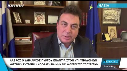 Δείτε στο “Περί Ηλείας” | Ο Δήμαρχος Ανδραβίδας – Κυλλήνης Γιάννης Λέντζας | Πέμπτη 14 Νοεμβρίου 2019 | Στις 10 μ.μ.13/11/2019Ηλεία