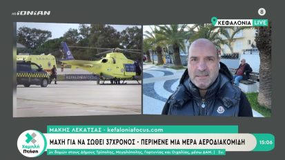 Δραματική αεροδιακομιδή 37χρονου στην Κεφαλονιά που υπέστη έμφραγμα και εγκεφαλικό25/11/2025ΥγείαΚεφαλονιά