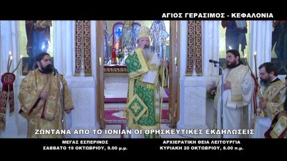 Ζωντανά από το ΙΟΝΙΑΝ | Άγιος Γεράσιμος – Κεφαλονιά. Όλες οι Ιερές Ακολουθίες | 19 & 20 Οκτωβρίου17/10/2019Web TVΚεφαλονιά