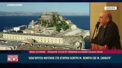 «Απαγόρευση μουσικής στο ιστορικό κέντρο Κέρκυρας από Μ. Πέμπτη έως Μ. Σάββατο»14/02/2024ΚοινωνίαΚέρκυρα