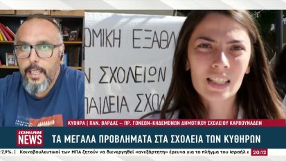 Τεράστιες ελλείψεις καθηγητών σε Γυμνάσιο Κυθήρων – Κάνουν μόνο 3 ώρες μάθημα19/09/2024ΕκπαίδευσηΚύθηρα