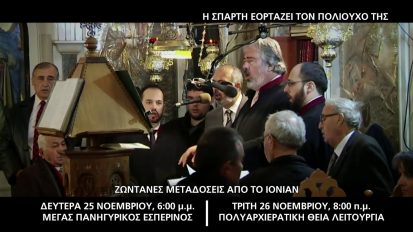 Δείτε Live από την Σπάρτη | Όσιος Νίκων : Ζωντανά από το ΙΟΝΙΑΝ οι Ιερές Ακολουθίες | 25 & 26 Νοεμβρίου 201920/11/2019Λακωνία
