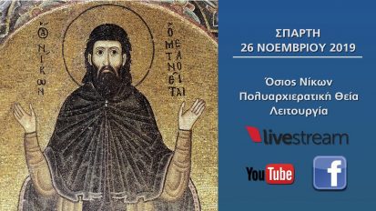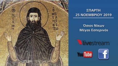 Σπάρτη | Όσιος Νίκων : Αρχιερατική Θεία Λειτουργία | Τρίτη 26 Νοεμβρίου 2019 | Στις 08.00 πμ25/11/2019ΚοινωνίαΛακωνία