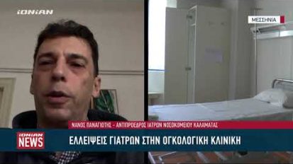 Χωρίς γιατρούς η ογκολογική στο Νοσοκομείο Καλαμάτας – Αναγκάζονται να πηγαίνουν σε ιδιωτικά16/01/2024ΥγείαΜεσσηνία